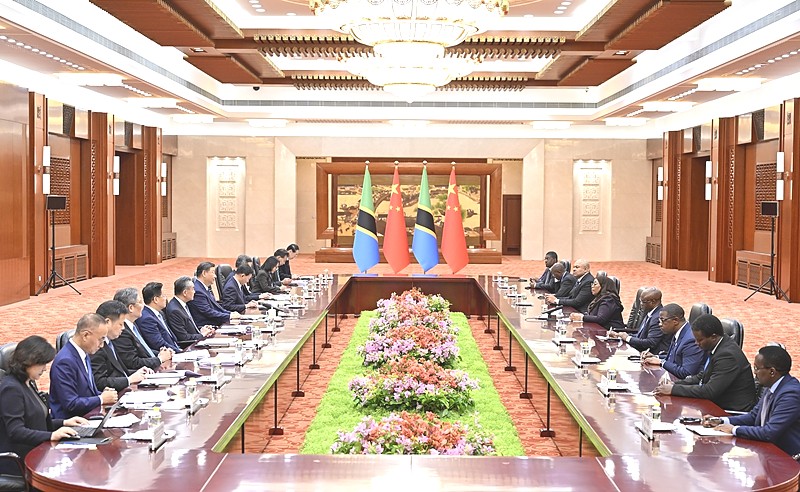 On the morning of September 4th, Chinese President Xi Jinping met with Tanzanian President Samia Suluhu Hassan, who was attending the Beijing Summit of the Forum on China Africa Cooperation, at the Great Hall of the People in Beijing